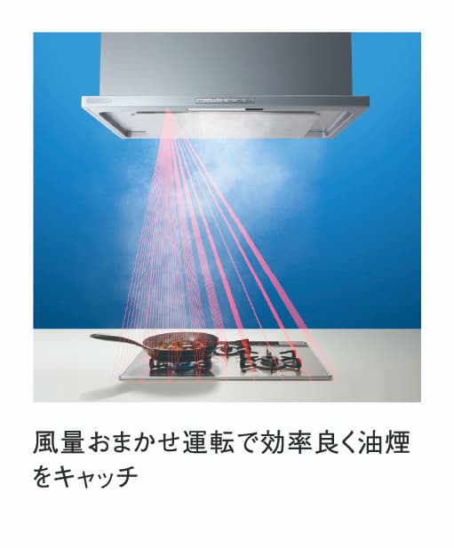 面倒なファン掃除が自動で簡単にできるレンジフードです。
